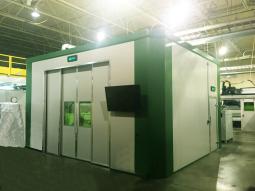 Fraunhofer CLA has been operating in the USA since 1994 developing new laser applications for a wide range of industrial customers. With its extensive expertise in laser materials processing and a state-of-the-art laser facility, the Fraunhofer USA CLA team helps to develop best process solutions including laser welding, laser cutting/drilling, laser cladding, and laser heat treatment. Fraunhofer’s facilities include Robotic and CNC work cells with fiber, disk, diode and CO² lasers up to 16kW and a state-of-the-art Metallographic Lab.The laser safety cabin’s main double-doors open to 10ft (3m) wide and are 10ft (3m) high to accommodate large pieces of equipment. The cabin is certified as laser safe (as required by the laser safety standards within IEC 60825-1 and ANSI Z136.1), and is interlocked with a fully dual-channel interlock control system. Fitted with High Definition CCTV and an HD monitor, an additional interlocked access door and dual-message, dual-colour LED Laser warning signs, the Laser Castle provides the complete solution.