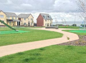 To provide decorative detailing this Rhoose Point residential park opted to use NatraTex Cotswold to establish a footpath around the park just off Trem Echni road. The flagship product, 6mm NatraTex Cotswold Classic was supplied to create this pathway. Alongside NatraTex the designer opted to use a resin material that was used to centralise a seating area that provides visitors to the park with a spectacular view over Dams Bay and further on to the Bristol Channel.NatraTex is not a resin bound or bonded product but instead shares similar characteristics to that of conventional macadam, being laid at the same depth and with sub layers (base and binder course). This results in a multipurpose surfacing material that would be perfect for use on highways, footpaths, playgrounds, MUGA, cycleways etc. NatraTex is virtually maintenance-free and maintains its colour for a long-lasting finish, meaning that it is a durable & versatile surface material.