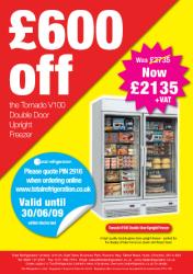 Orders for these freezers can be placed either on the website,or by telephone, 0845 127 2527. The purchaser simply needs to quote a promotional PIN to get the discount – 2916 for the double door Tornado and 2917 for the single door Tornado – either to the member of Total Refrigeration’s Customer Service team or enter into the PIN field in the shopping cart when ordering online.