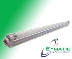 E-Matic conversion units offer trouble free retrofit of high efficiency T5 linear fluorescent tubes from existing standard T8 and T12 fixtures.