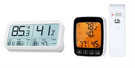 We offer two different hygrometers, both in-stock ready for immediate despatch. The Wireless Indoor Outdoor Thermometer Hygrometer with colour display provides accurate humidity and temperature readings for both inside and outside simultaneously and can connect up to 3 Wireless Sensors with a 200ft/60m remote range.The Digital Household Thermometer Hygrometer with rear magnet has a built in timer with alarm function.
