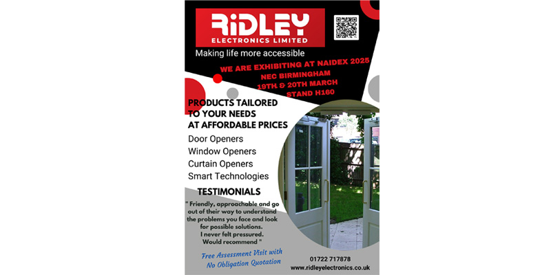 We are exhibiting at this years Naidex Show, NEC Birmingham on 19th and 20th March 2025 at stand H160, where you will be able to see a wide range of our products in action, hope to see you there.