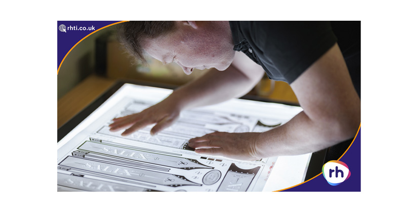 RH discussing our screen printed labels and overlays. Our pre-press department ensures top quality industrial labels and membrane keypads.