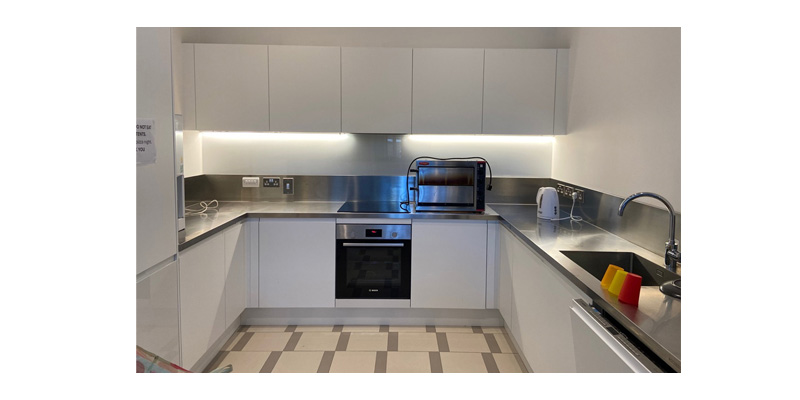 GEC Anderson were appointed to supply custom stainless steel worktops and upstands for a total of nine common rooms and kitchens. 40mm edge profiles were specified for the worktops that included integral sinks with wet zone inline drainers.