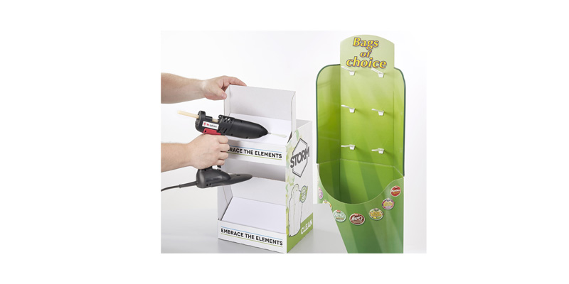 At Glue Guns Direct, we specialize in premium hot melts for point of sale displays. Our comprehensive range of adhesives for point of purchase displays are designed to meet the demands of high-speed production. Our selection includes industry-leading solutions for bonding cardboard displays, Correx and other materials for retail displays.