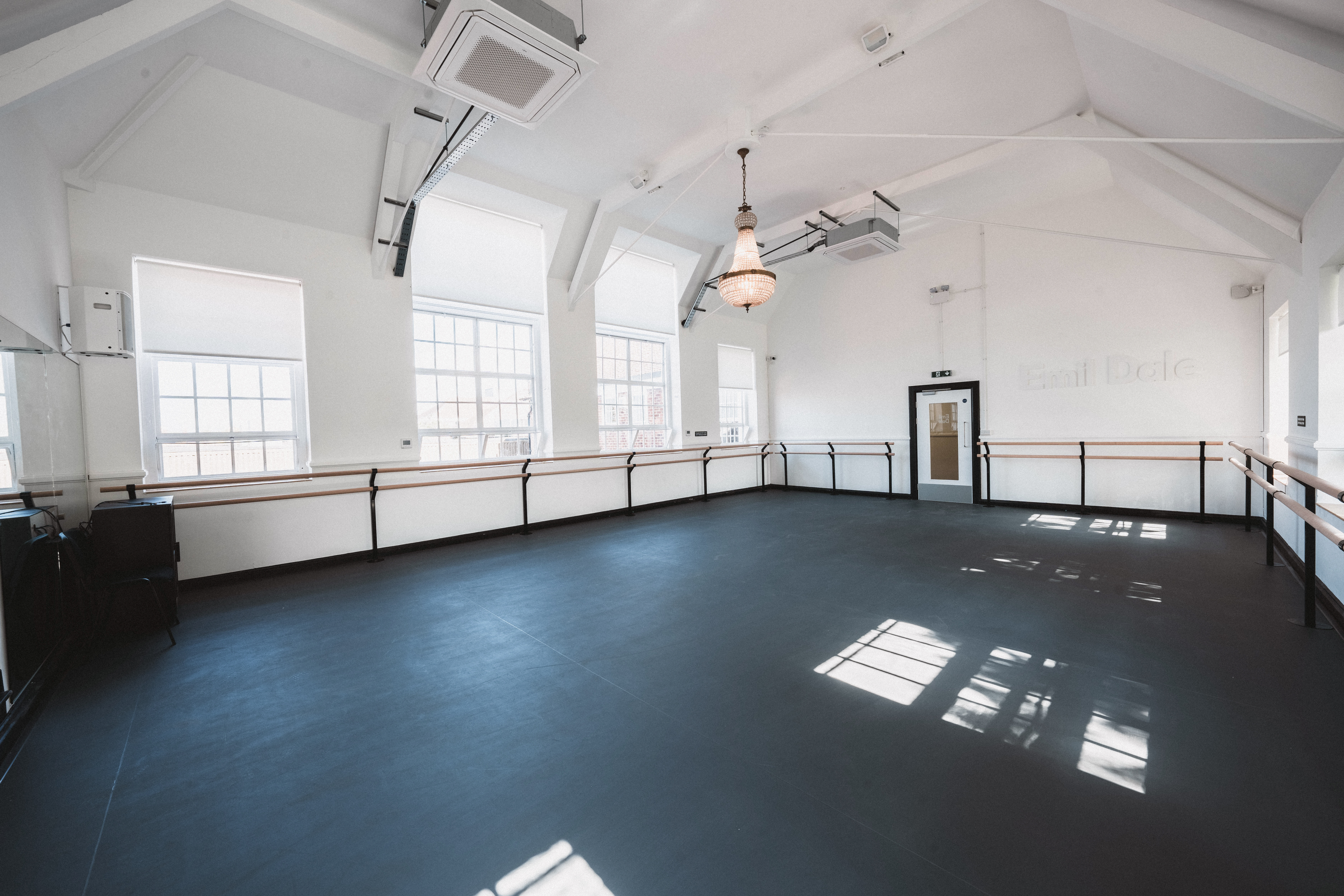 The performing arts school has eight studios, including a studio theatre, with Harlequin floors and ballet barres. Seven studios are equipped with a Harlequin Flexity sprung floor with a Harlequin Standfast top surface. The eighth studio, named the Harlequin Studio, has a Harlequin Flexity sprung floor and a Harlequin Cascade performance vinyl floor.