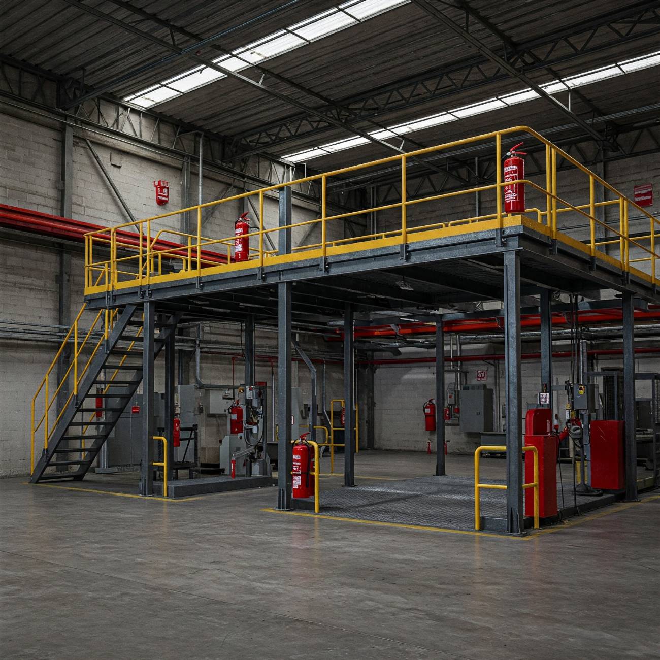 • Sprinkler systems: Often required for larger mezzanine floors or those used for high-risk purposes.