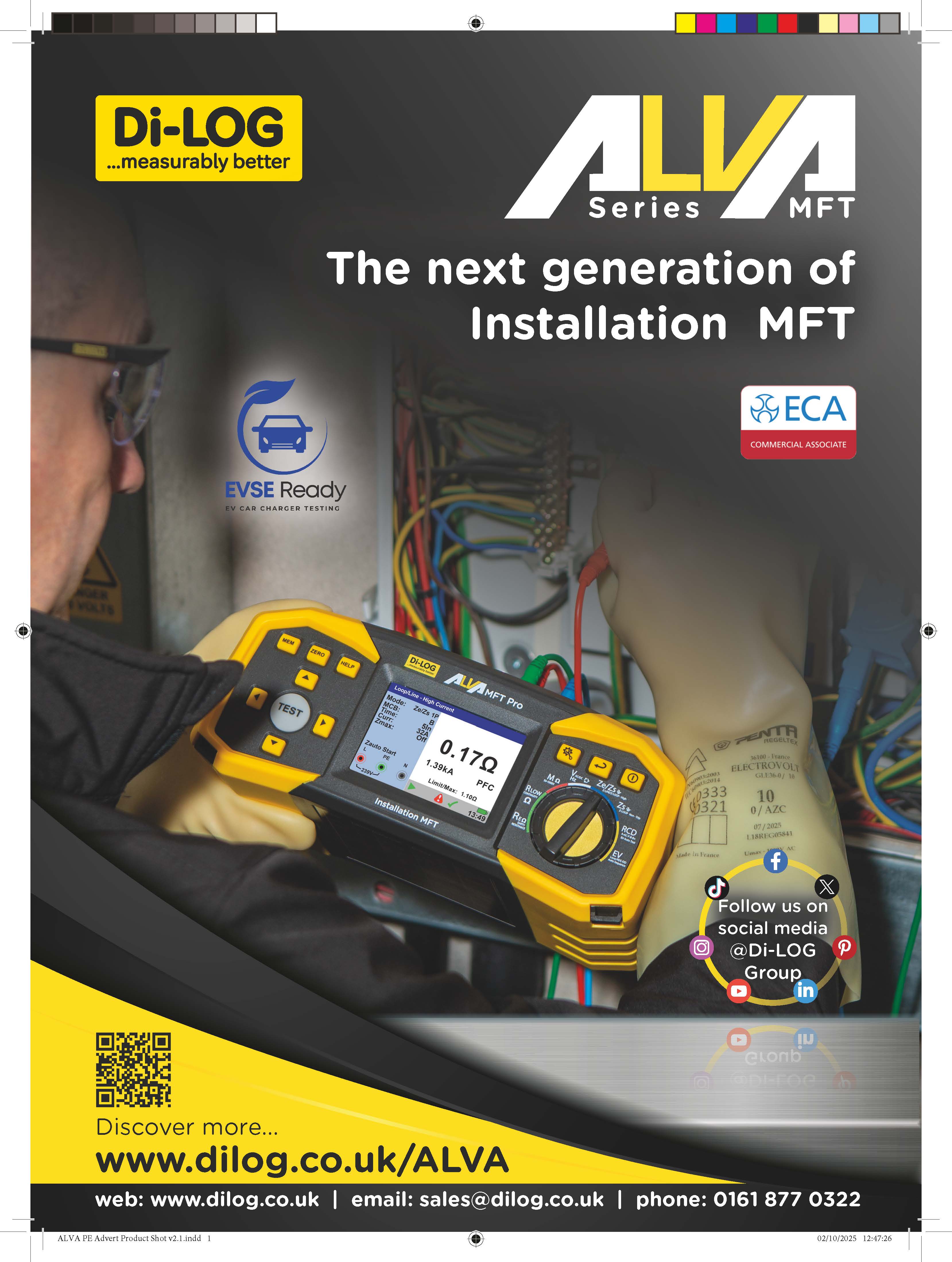 Electrical professionals demand tools that deliver precision, reliability, and efficiency. Enter the new Di-LOG ALVA Series Multifunction Tester, built to exceed those expectations with next-generation testing technology, intuitive usability, and the industry's first comprehensive support package. Designed to comply with the 18th Edition, the ALVA MFT, ALVA MFT Pro, and ALVA MFT Pro EV raise the bar for electrical safety, EV charge point verification, and site testing.