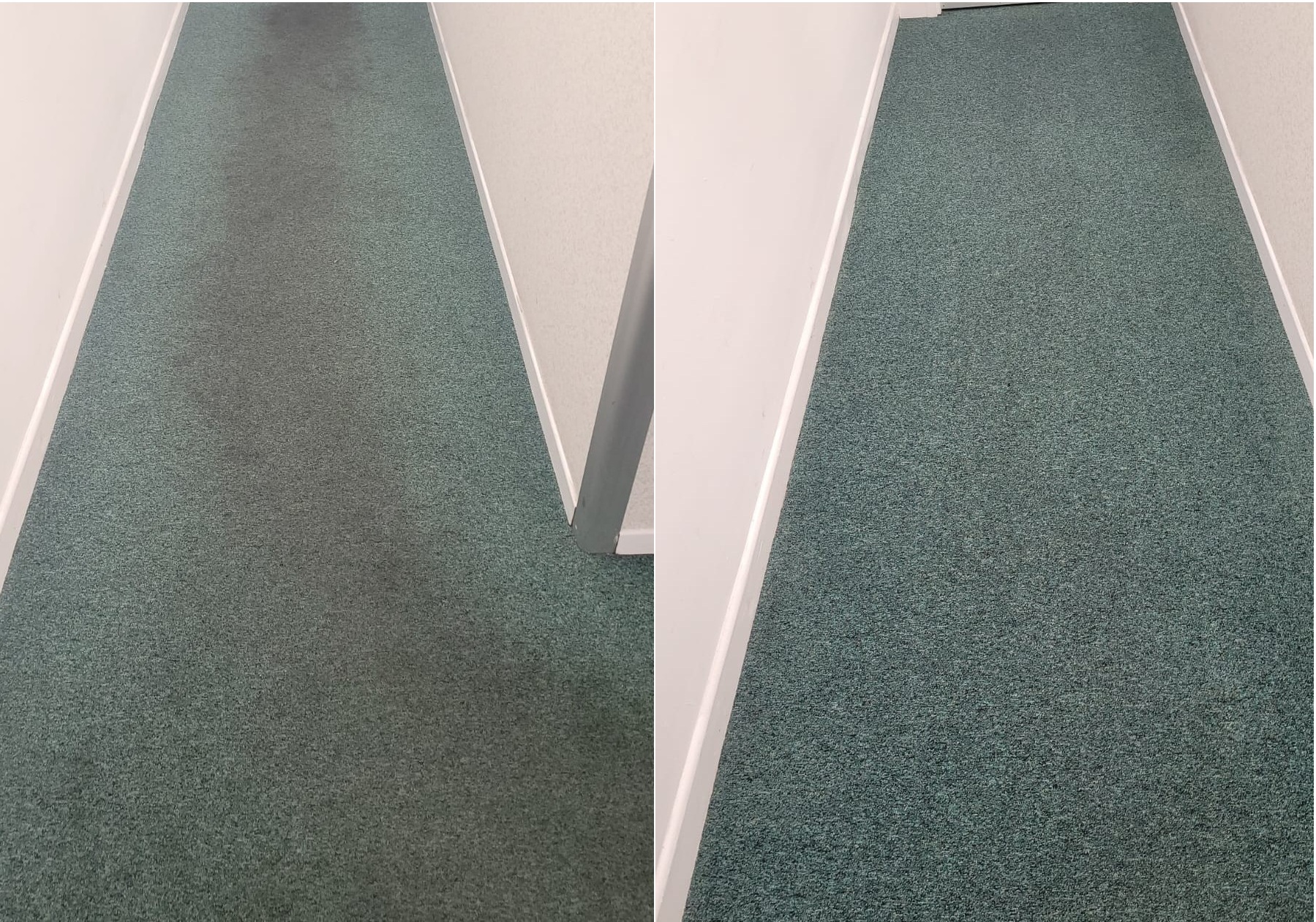 Busy Walkways in premises attract bacteria and dirt so regular cleaning via professional means is a must as was the case for this company , but after a little chemical pre spray followed by hot water extraction cleaning, all was back looking and smelling fresh.