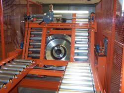 A signal is then given to the hardness test machine to carry out the test. On completion of the test the system is reversed automatically, raising the wheel and then feeding it back through the turnover unit and discharge conveyors.