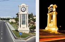 In twenty two years of manufacturing large exterior clocks we have never been involved with Grandfather clocks but this enquiry was different. The Mayor of the Sabunchi District in Azerbaijan wanted a large clock feature by the side of the road for all to see going to and from the airport and came up with a large scale Grandfather clock design.The clock case was made in limestone 15.1m high and weighs in at ten tons, with the pendulum bob itself being 6m in length plus a 915mm diameter bob at the end. The clocks themselves are 2.5m diameter skeleton style clocks chosen from our standard range fitted in spun bezels and illuminated at night.