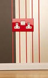 The availability of the plates in pillar box red is ideal for differentiating particular sockets in commercial and healthcare environments for safety reasons but also provides a fun option for brightly designed residential schemes.