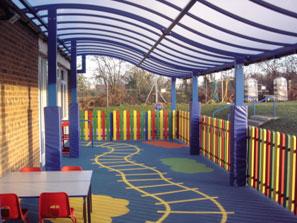 Manufactured with powder coated aluminium frames that will not rust or ever require re-painting, Twinfix canopies use tough multiwall (or solid) polycarbonate for the roof glazing. This does not transmit UV in sunlight, so is the ideal material to create a school shelter.Twinfix offer a full in-house design, manufacture and installation package for their canopies and walkways. Each glazed cover is designed to fulfil the identified needs at that school and to enhance the space available. Like all their canopies, structural calculations were carried out on this new design before manufacture commenced.
