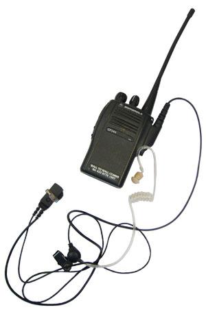 Again, the request was for a small, lightweight, discrete radio and the Motorola GP344 was provided with a 3 wire cuff mic and ear bud and acoustic tube.
