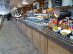 Serving fresh food daily is a team of 35, made up of full and part time chefs, cooks, and counter and waiting staff. The team provides breakfast, lunches and snacks including: hot meal choices, salads, warming soups & rolls, as well as baked potatoes with various fillings, paninis, sandwiches and tea/coffee and cold drinks.