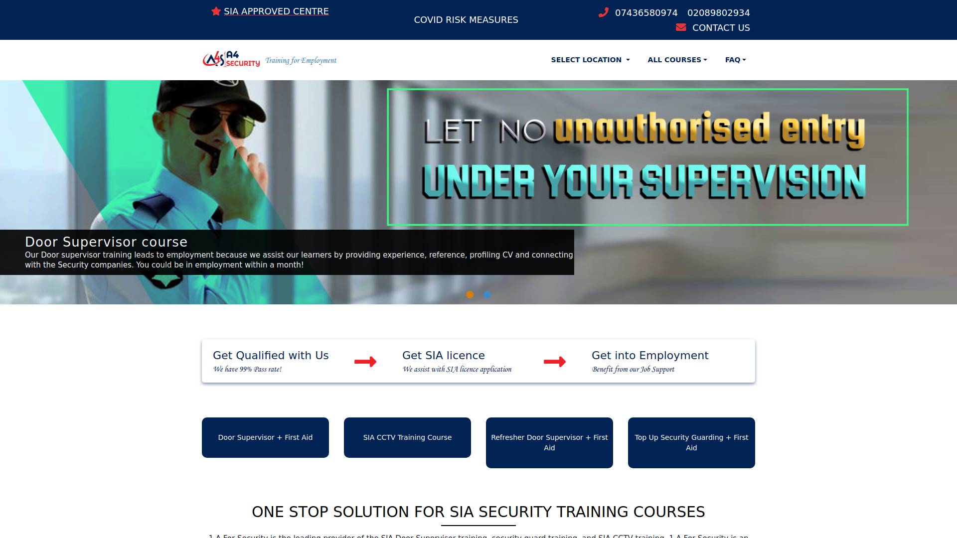 At 1 A For Security, we offer a comprehensive range of SIA training courses designed to meet the highest standards in the security industry. Our SIA Security Training programs cover all essential areas, including specialised SIA CCTV Training for those looking to operate surveillance systems efficiently. For individuals aiming to work in venues such as bars and clubs, our Door Supervisor Training provides the necessary skills and certification. We also offer SIA Top Up Training to ensure that security professionals stay up-to-date with the latest industry regulations and practices. With our expert instructors and tailored courses, 1 A For Security is your trusted partner in achieving SIA certification and advancing your career in the security field.