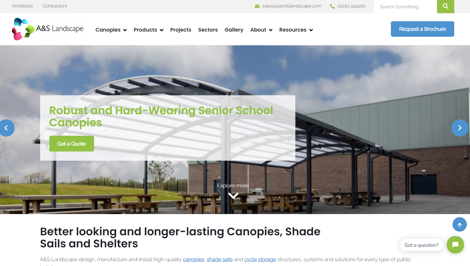 A&S Landscape design,manufacture and install high quality canopies, tensile fabric and cycle storage structures, systems and solutions for every type of public building.