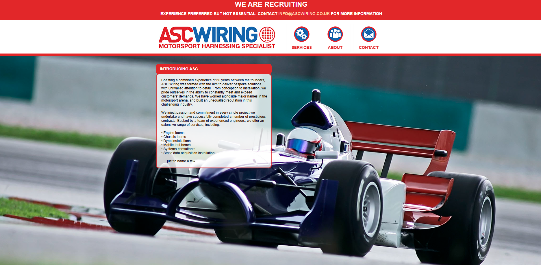 Boasting a combined experience of 60 years between the founders, ASC Wiring was formed with the aim to deliver bespoke solutions with unrivalled attention to detail. From conception to installation, we pride ourselves in the ability to constantly meet and exceed customers’ demands. We have worked alongside major names in the motorsport arena, and built an unequalled reputation in this challenging industry.
