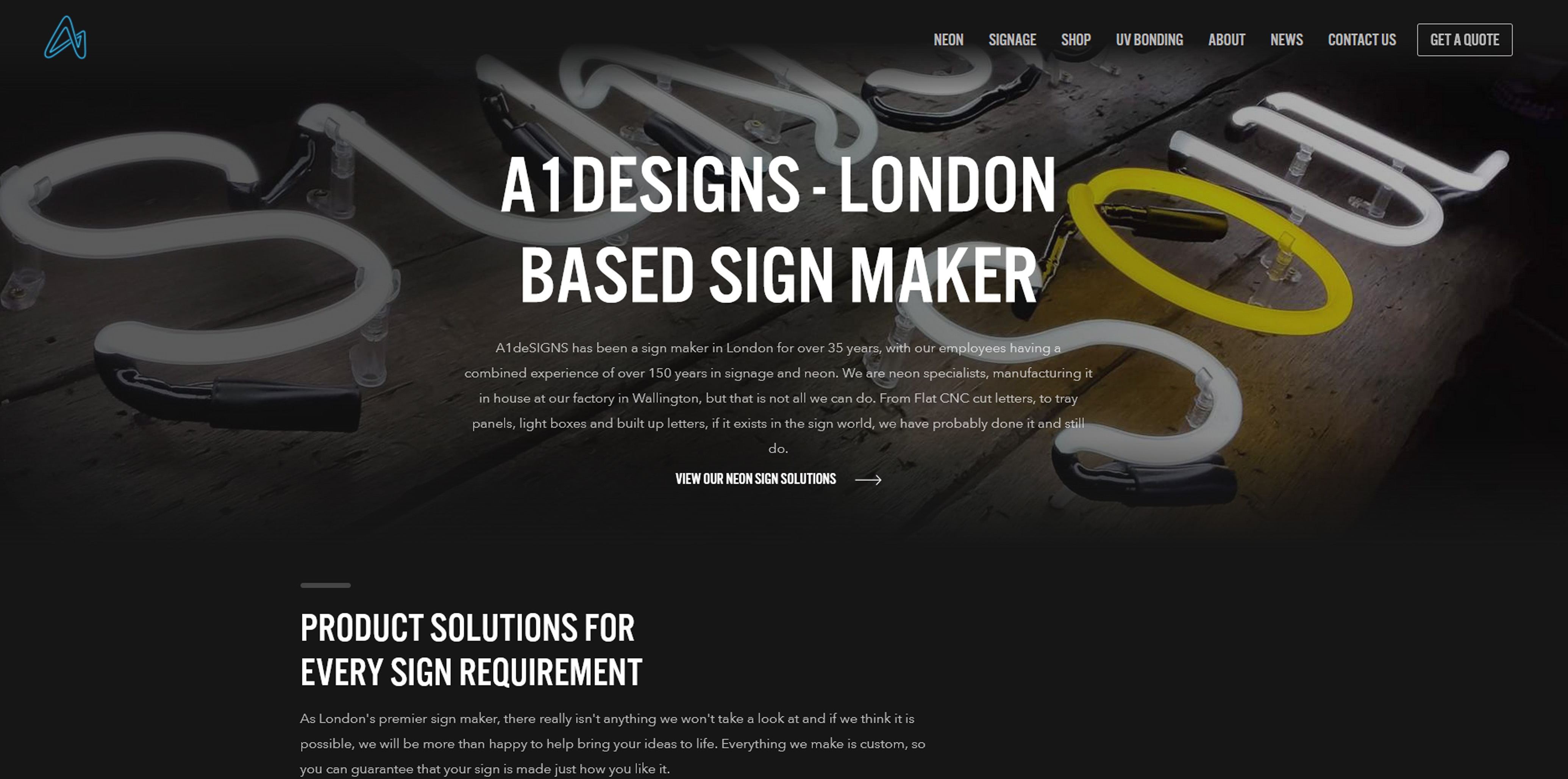 Sign makers of neon signage, cold cathode lighting and bespoke glass etched signs, A1deSIGNS are your one stop shop for your signage requirements. We provide the complete sign makers service for businesses both large and small and in a variety of industry including retail, hospitality and offices etc.