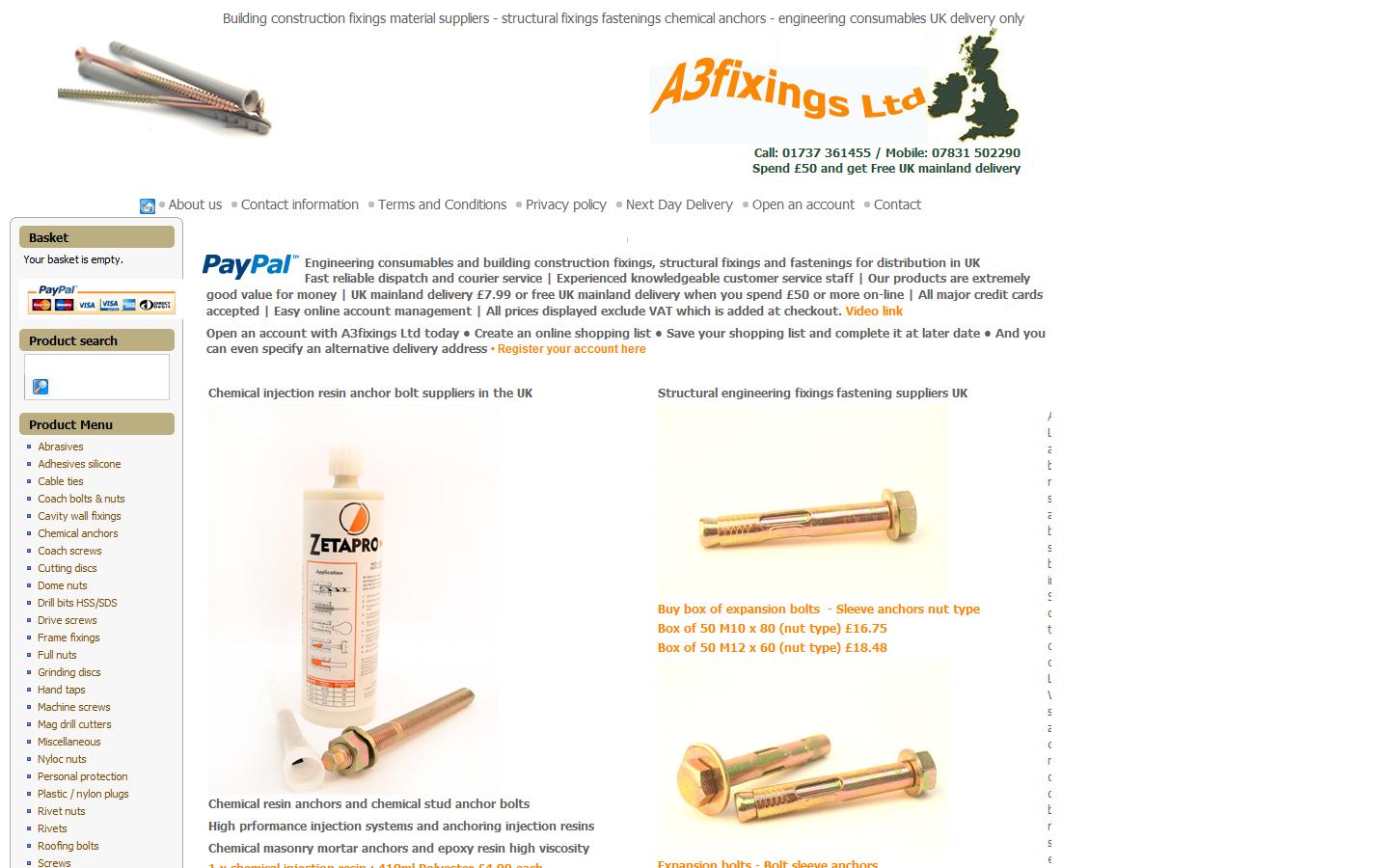 Distributor/stockist of Nuts, Bolts, Washers, Machine Screws, Woodscrews, Resin Fixings, Brickwork Fixings, Concrete Fixings, Abrasives, Drill Bits, Rivets, Safety Products, Self Tapping Screws,