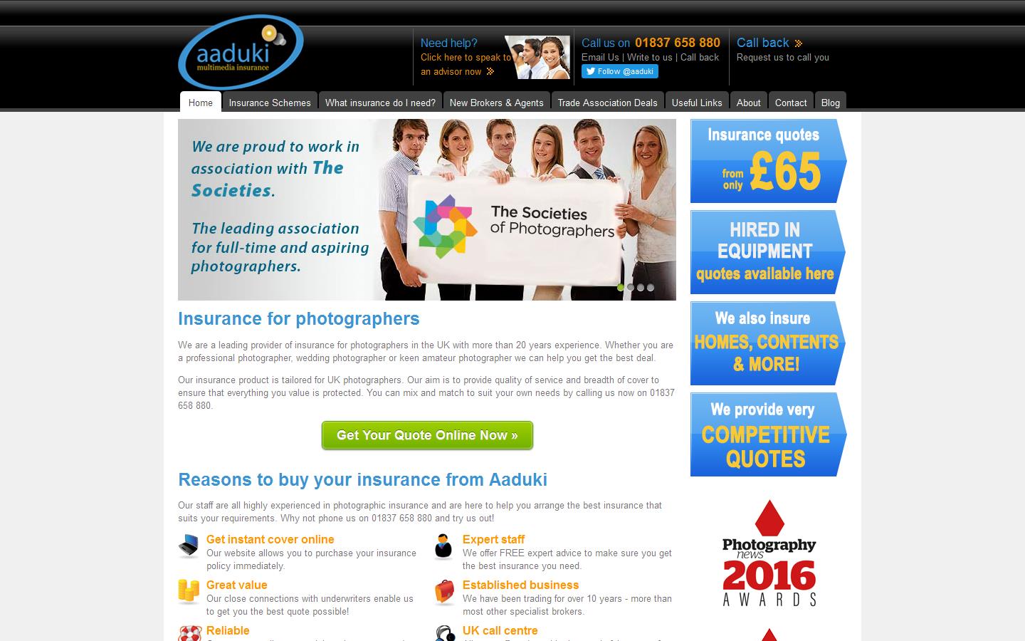 We are a leading UK provider of insurance to the photographic and video making community. Approved by The Socities of Photographers, insurance is arranged around you and your needs and is totally flexible. Call us for a no obligation quote from our friendly but expert team or go online and visit our website.
