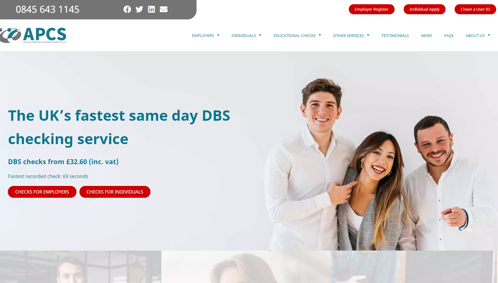 APCS have been a Registered Body with the Disclosure and Barring Service (formerly CRB) and Disclosure Scotland since 2002. Submitting in excess of 140,000 checks per year and a client base of over 14,000 companies, we are the largest supplier of criminal record checks in the North West of England.