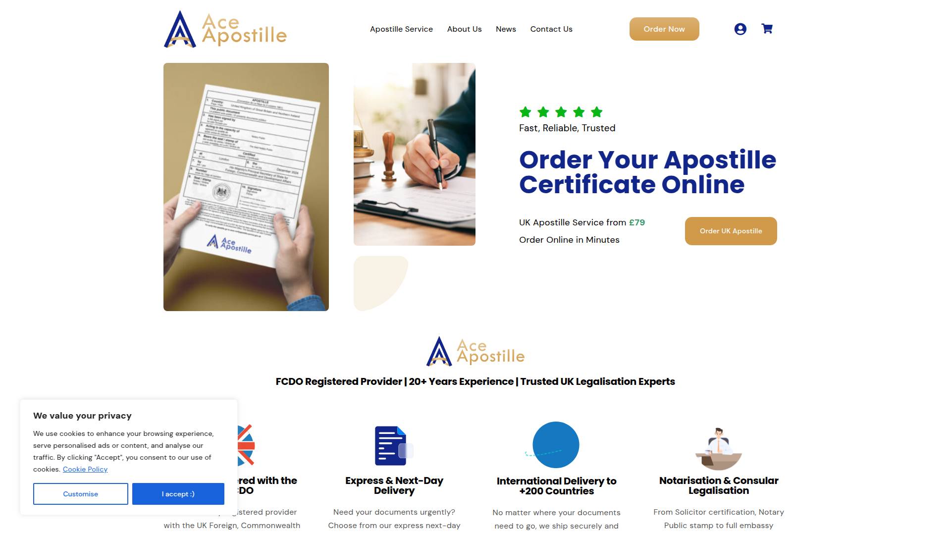 Ace Apostille offers fast, secure, and professional Apostille services for all UK-issued documents. With over 20 years of experience in document legalization, our expert team has successfully processed more than 100,000 documents for individuals, professionals, and businesses worldwide. We simplify the process of obtaining a UK Apostille, a certificate issued by the UK Foreign, Commonwealth, and Development Office (FCDO) that verifies the authenticity of a document for international use. Recognized in over 120 countries under the Hague Convention of 5 October 1961, an Apostille ensures your UK document is legally accepted abroad. You may need a UK Apostille if you're getting married overseas, applying for a visa or citizenship, studying or working in another country, opening an international business, registering a UK company abroad, or buying property outside the UK. Trust Ace Apostille to handle your legalization needs with speed, precision, and care.