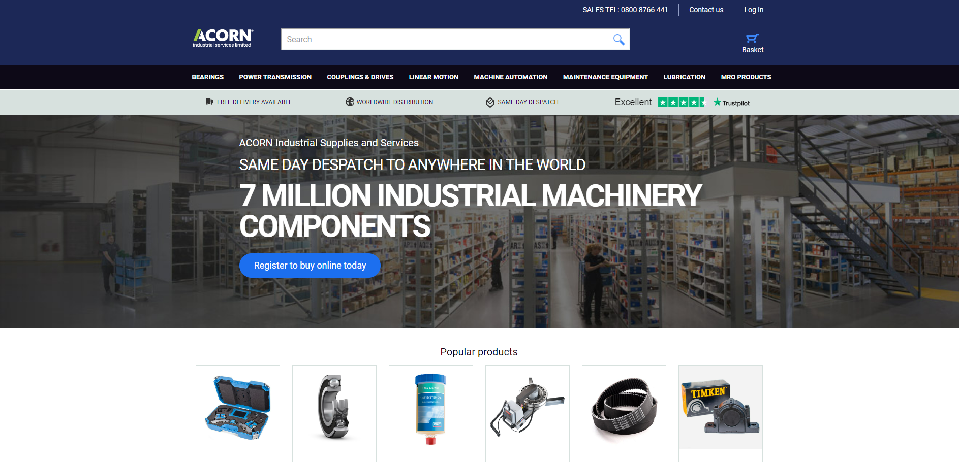 ACORN® is one of the largest stockists and suppliers of bearings & housings, linear motion systems, couplings and drives, power transmission, maintenance equipment in Europe.