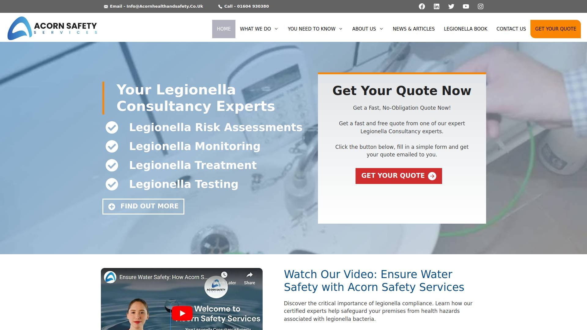 Acorn Safety Services is a trusted health and safety consultancy, providing expert compliance solutions across the UK. We specialise in Legionella risk management, helping businesses identify and mitigate waterborne risks to ensure regulatory compliance and safe environments. Our services extend to fire risk assessments, construction safety, and workplace health and safety, supporting a wide range of industries. As an accredited member of the Legionella Control Association, we uphold the highest standards, offering practical solutions tailored to your needs. Our expert team conducts thorough assessments, delivers actionable recommendations, and provides training to keep your business safe and compliant. Whether you require ongoing safety management, audits, or consultancy, Acorn Safety Services is your trusted partner in risk prevention. Get in touch today to safeguard your workplace and ensure full regulatory compliance.