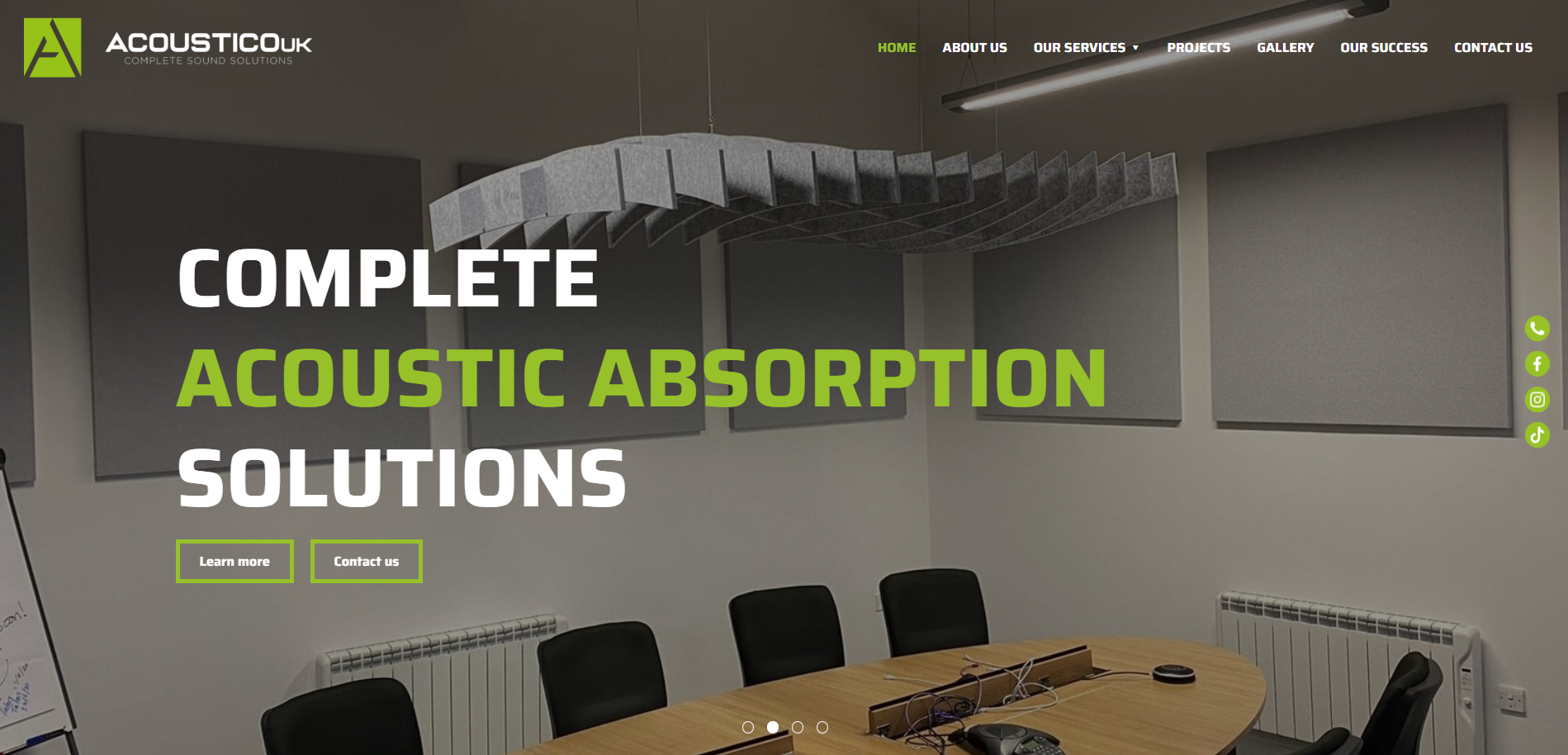 Acoustico UK design, supply and install sound absorption products throughout the United Kingdom. Creating perfect acoustic environments to meet the requirements of your area. The design can be acoustically functional and practical whilst offering beautiful, elaborate, eye catching designs or simple and discreet finishes.