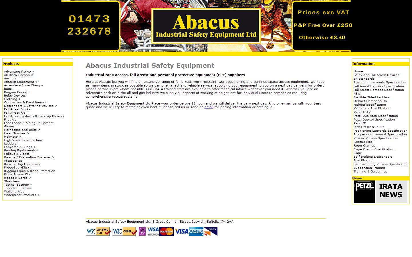 Here at Abacus-ise you will find an extensive range of fall arrest, work restraint, work positioning and confined space access equipment. We keep as many items in stock as possible so we can offer a fast and reliable service, supplying your equipment to you on a next day delivery for orders placed before 12pm where possible. Our IRATA trained staff are available to offer technical advice whenever you need it. Whether you are an adventure park or in the oil and gas industry we supply all aspects of working at height PPE for individual users to companies requiring comprehensive rescue systems.