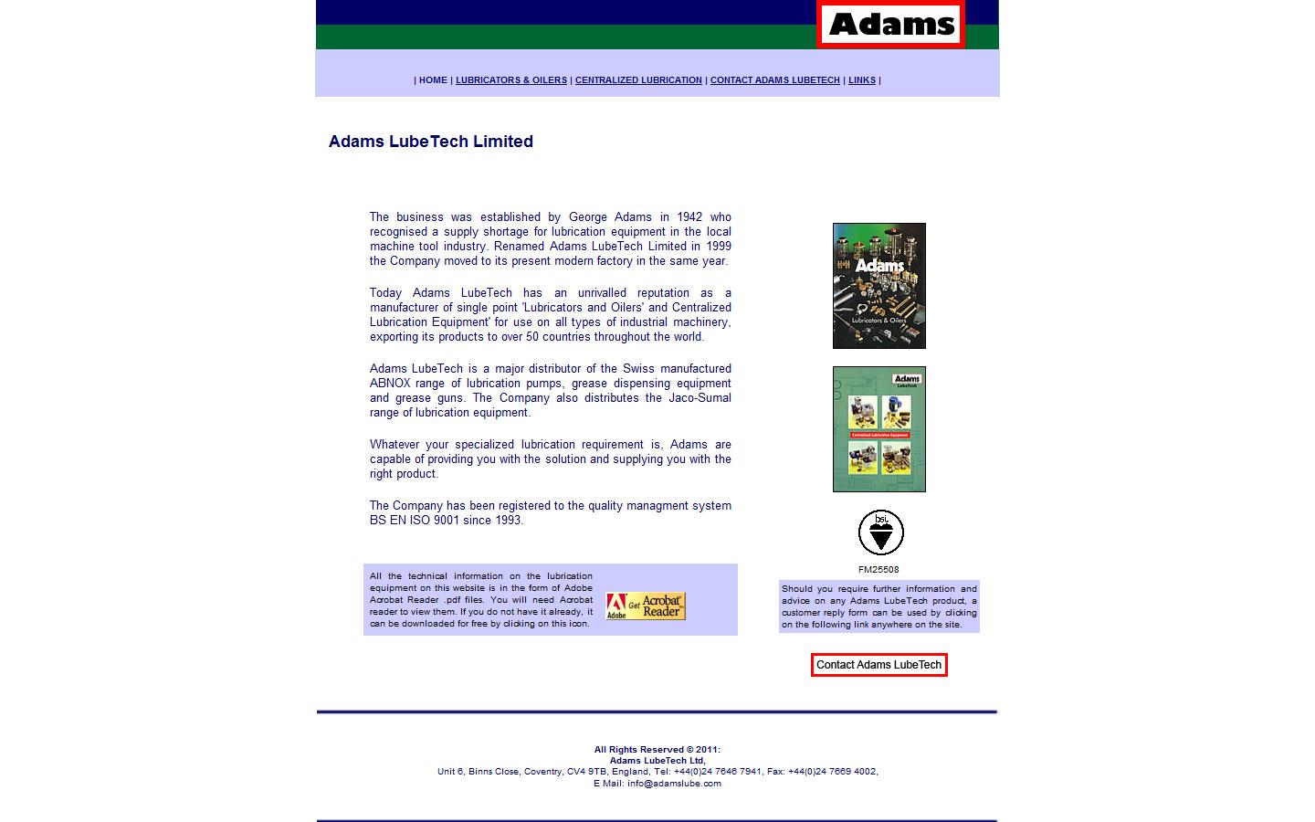 Adams LubeTech has an unrivalled reputation as a manufacturer of single point 'Lubricators and Oilers' and Centralized Lubrication Equipment' for use on all types of industrial machinery, exporting its products to over 50 countries throughout the world.