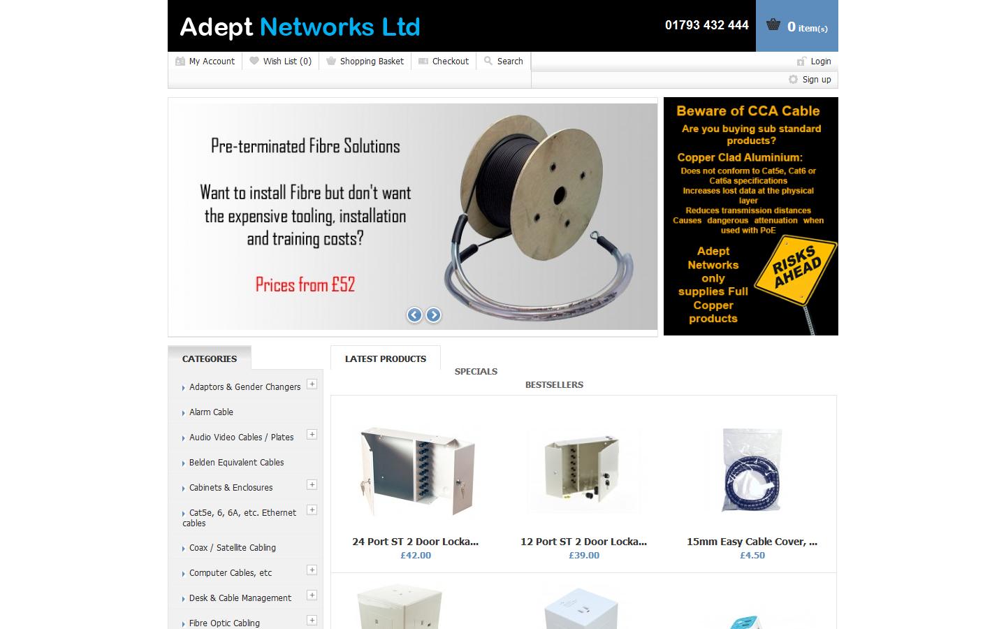 Adept Networks sells networking equipment and related products such as AV adapters / gender changers, cabinets & enclosures, cable management, computer cables, fibre optic cables, firewire connectors, keyboards, switches, USB connectors and many other items and accessories.