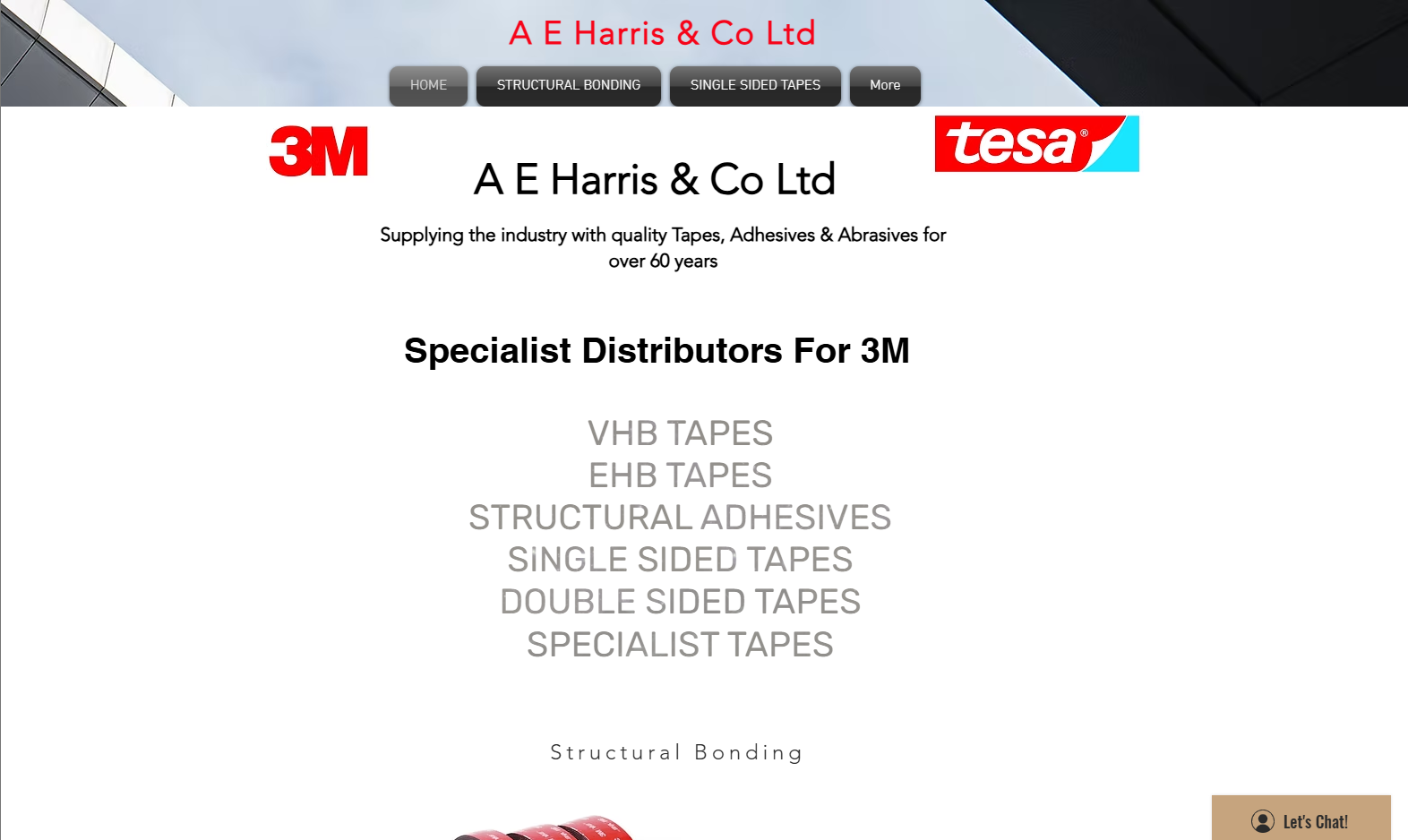 Established over 40 years ago, A E Harris & Co was formed to service the requirements or both large and companies requiring tape, adhesive and abrasive products. Located in Chester, we offer our customers one of the largest ranges of tapes and adhesives supplying throughout the UK.