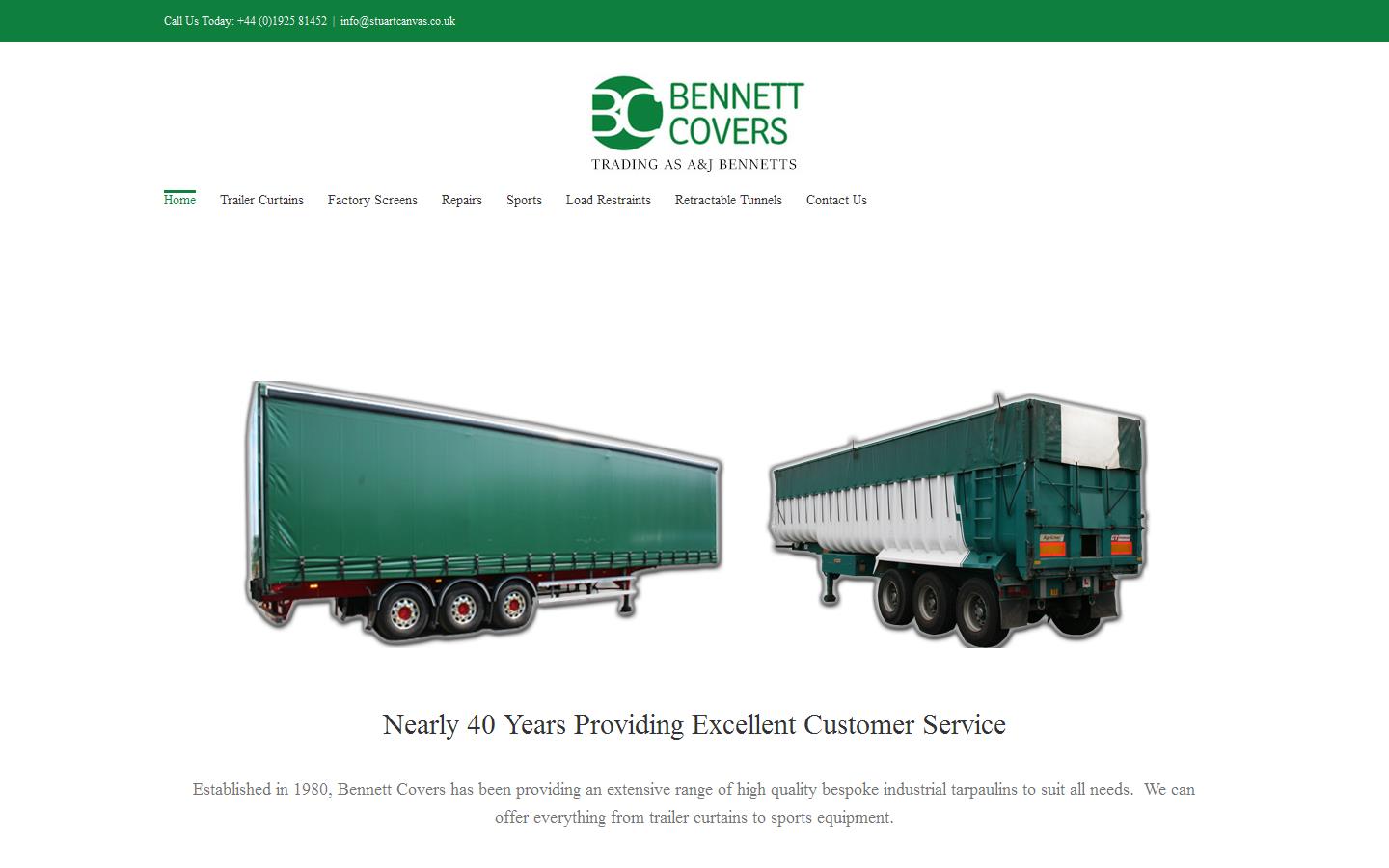 Established in 1980, A&J Bennetts, trading as Bennett Covers, has been providing an extensive range of high quality bespoke industrial tarpaulins to suit all needs. We can offer everything from trailer curtains to sports equipment.
