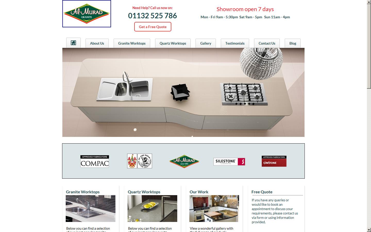 | We, at Al-MuradGranite.Com offers quartz worktops in a wide range of colours. View our full range of quartz kitchen worktops online. Get the look and feel of a Quartz worktop but with more consistent and solid colour with us. We at Al-MuradGranite.Com specializes in Granite Worktops. We design, manufacture and install Granite worktops and surfaces throughout the UK. We are one of the largest suppliers of quality quartz worktops in the UK. We also supply and fit granite, Silestone and Corian kitchen worktops for your bathroom and kitchen worktops. Visit us online to view our range or call us today at 01132 525 786. |