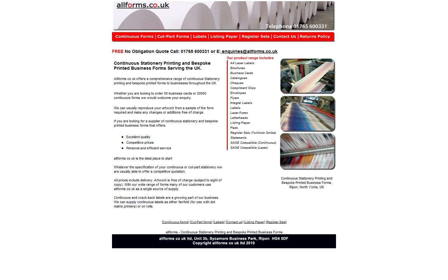 Allforms co uk offers a comprehensive range of continuous Stationery printing and bespoke printed forms to businesses throughout the UK