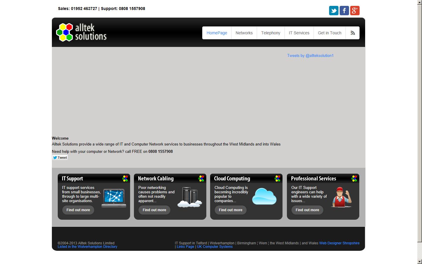 Alltek Solutions provide IT System and Computer Support to business small and large throughout the West Midlands, Shropshire and Mid Wales. We offer a reliable, professional, affordable service for all of your IT requirements. Please feel free to contact us for a free, no obligation IT consultation now.
