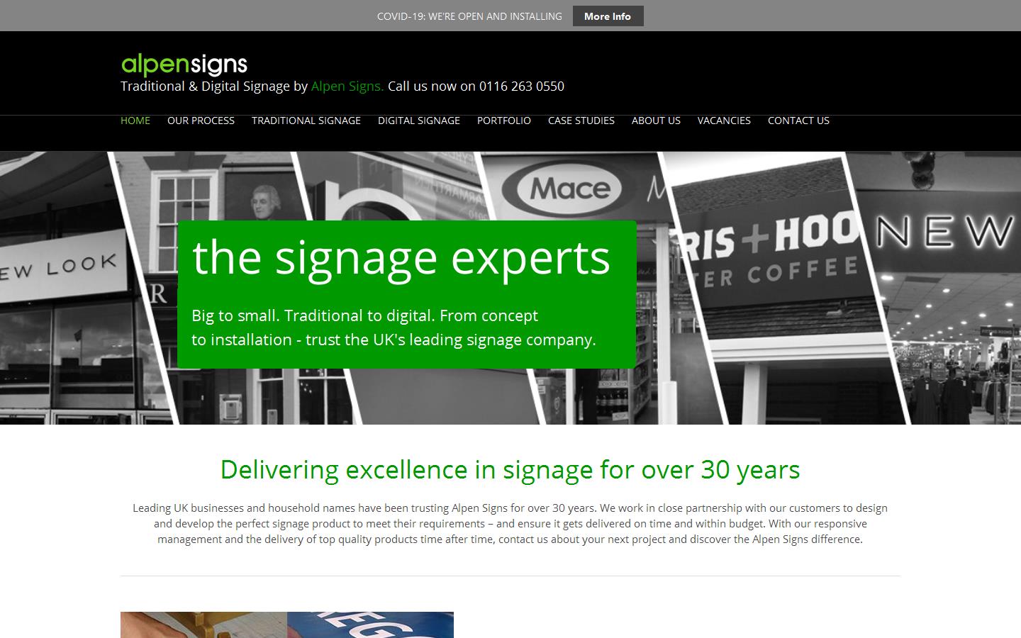 Alpen Signs has a proven track record of designing, manufacturing and installing high quality, affordable signs to a wide range of businesses over the past 30 years. We pride ourselves on high levels of customer service and are able to offer a speedy turnaround on your signage projects.