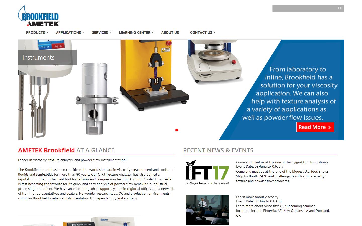 Brookfield AMETEK is considered to have set the standard in viscosity measurement and control across the globe. Products include Viscometers, Rheometers, Texture Analyzers and Powder Flow Testers. AMETEK GB Ltd also supply Viscosity Standards, accessories and software.