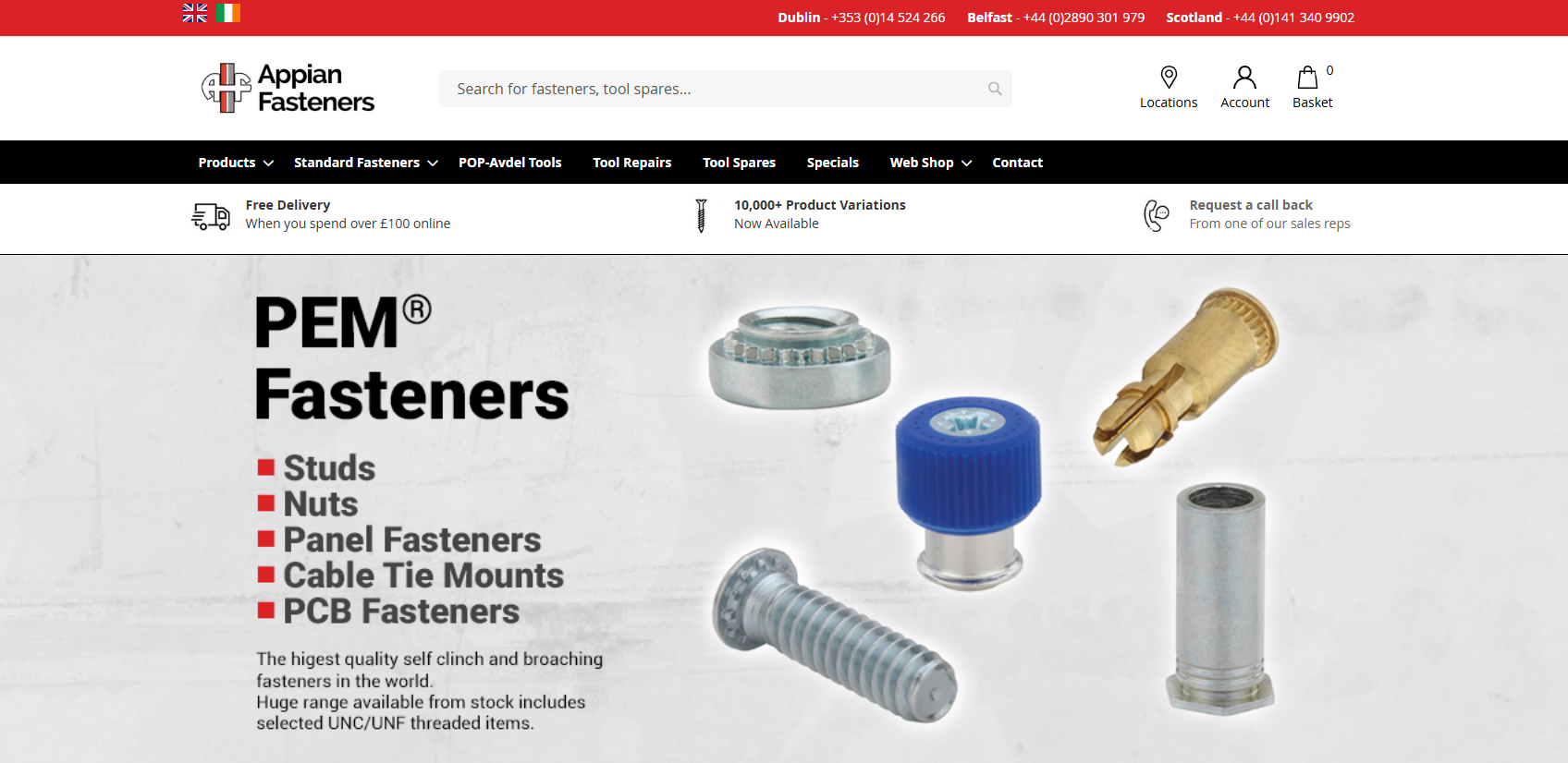 Appian Fasteners are a business to business technical fastener distributor. We understand the day to day issues of manufacturing and offer friendly, expert advice as and when required by our customers. Working with our Global partners, we have a world class product portfolio for the core markets we serve which include electronics, automotive, enclosure manufacturing, medical equipment, heating & ventilation, general engineering, and design houses.