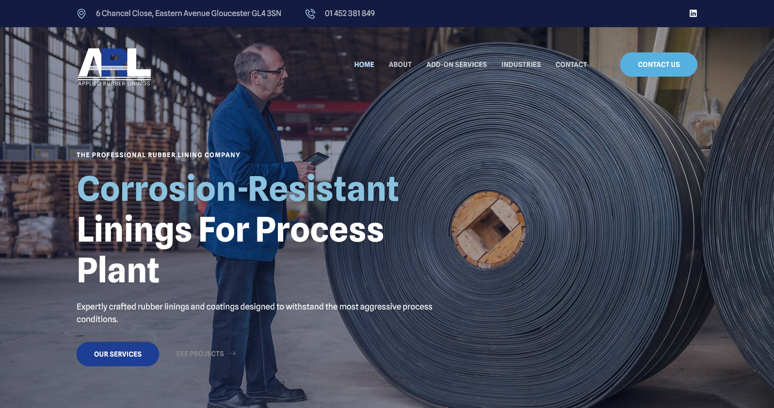Applied Rubber Linings supply customers in both the U.K. and overseas with high quality rubber linings and protective coatings. Our company has acquired invaluable experience and expertise in rubber linings and protective coatings and is now well established and respected throughout British Industry as The Professional Plant Lining Company in the U.K. Please visit the Applied Rubber Linings website for more details.