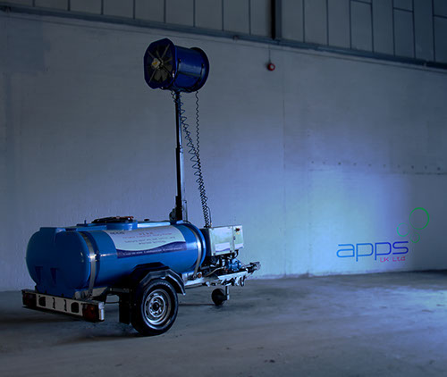 The PIRA is a self-contained mobile method of distributing an Airborne10/water mix into the atmosphere by means of the Rotary Atomiser. These can be located in remote areas as to intercept and absorb unwanted airborne irritants such as odour, dust and bacteria.