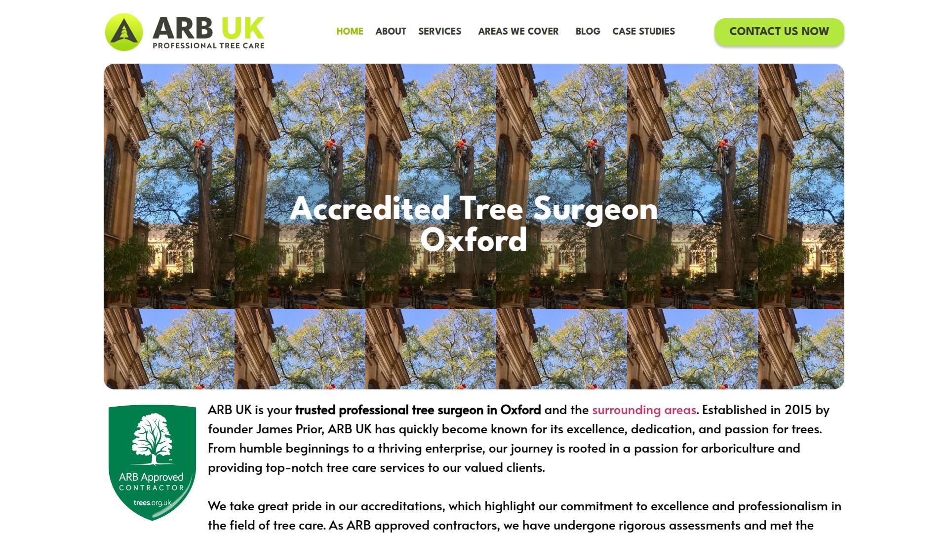 ARB UK is your trusted professional tree surgeon in Oxford and the surrounding areas. Established in 2015 by founder James Prior, ARB UK has quickly become known for its excellence, dedication, and passion for trees.