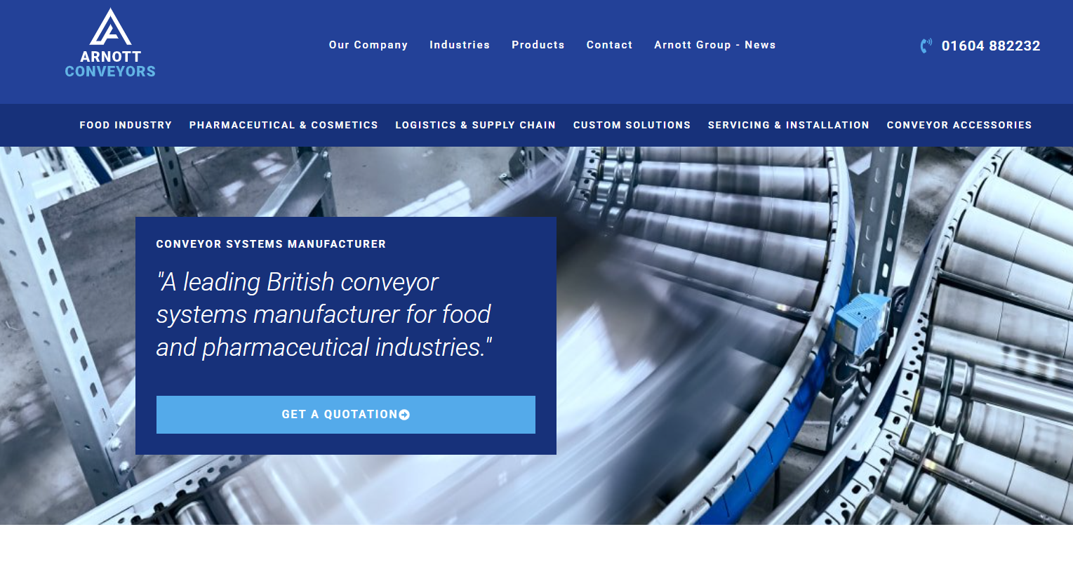 We’ve been designing, manufacturing and installing conveyor systems for 35 years. In that time, Arnott Conveyors has become one of the UK’s leading conveyor manufacturers. We work in partnership with our industry clients across food, pharma, personal care and logistics sectors, delivering conveyor and automation solutions. We offer complete product line systems, bespoke machines and standard conveyors.