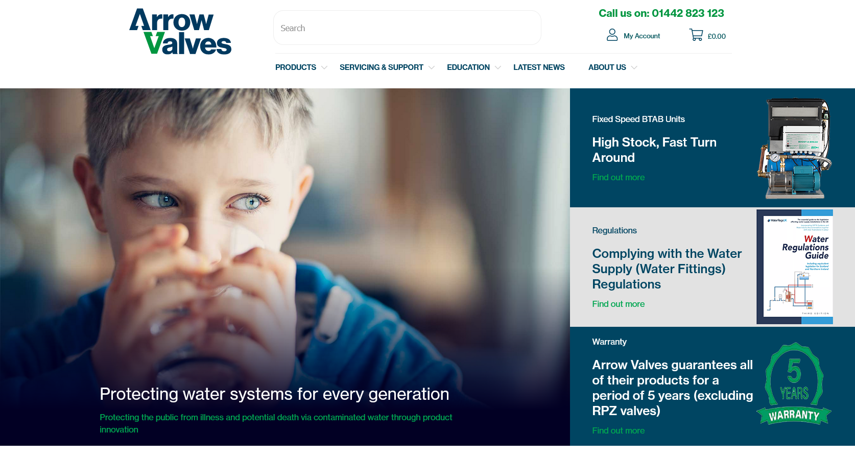 For high standard products, specialist expert service to assist with the essential task of adhering to the Water Regulations, contact Arrow Valves Ltd. For immediate technical information on products, quotations and more details on Water Regulations please visit our website.