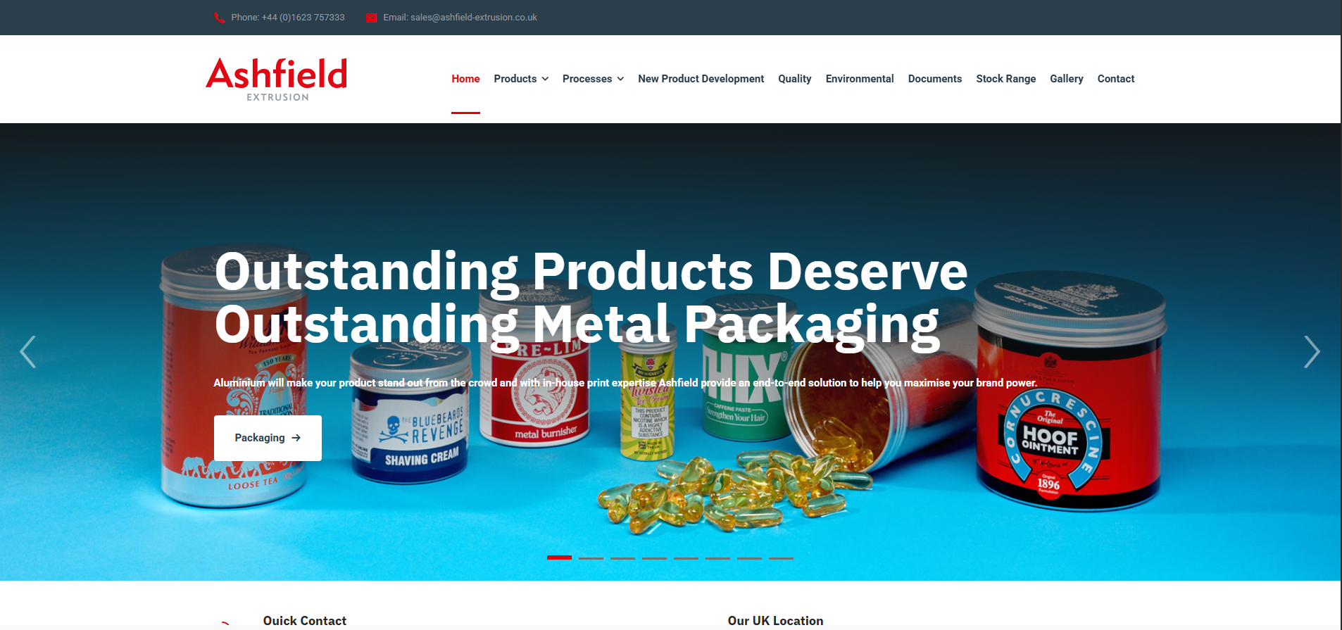 Established in 1984, Ashfield Extrusion is a single-site UK manufacturer of aluminium impact extrusions. We operate a range of additional processes in order to offer customers a comprehensive service. Integrity and customer service are at the heart of everything we do and the strength and duration of customer relationships is testament to this approach. Typically, we develop the product with the customer and collaborate in the design process from concept and initial samples through to production. We then continue to supply for the lifetime of the product. The quality of our products and service is excellent – this comes from our culture and the quality and ability of our people.