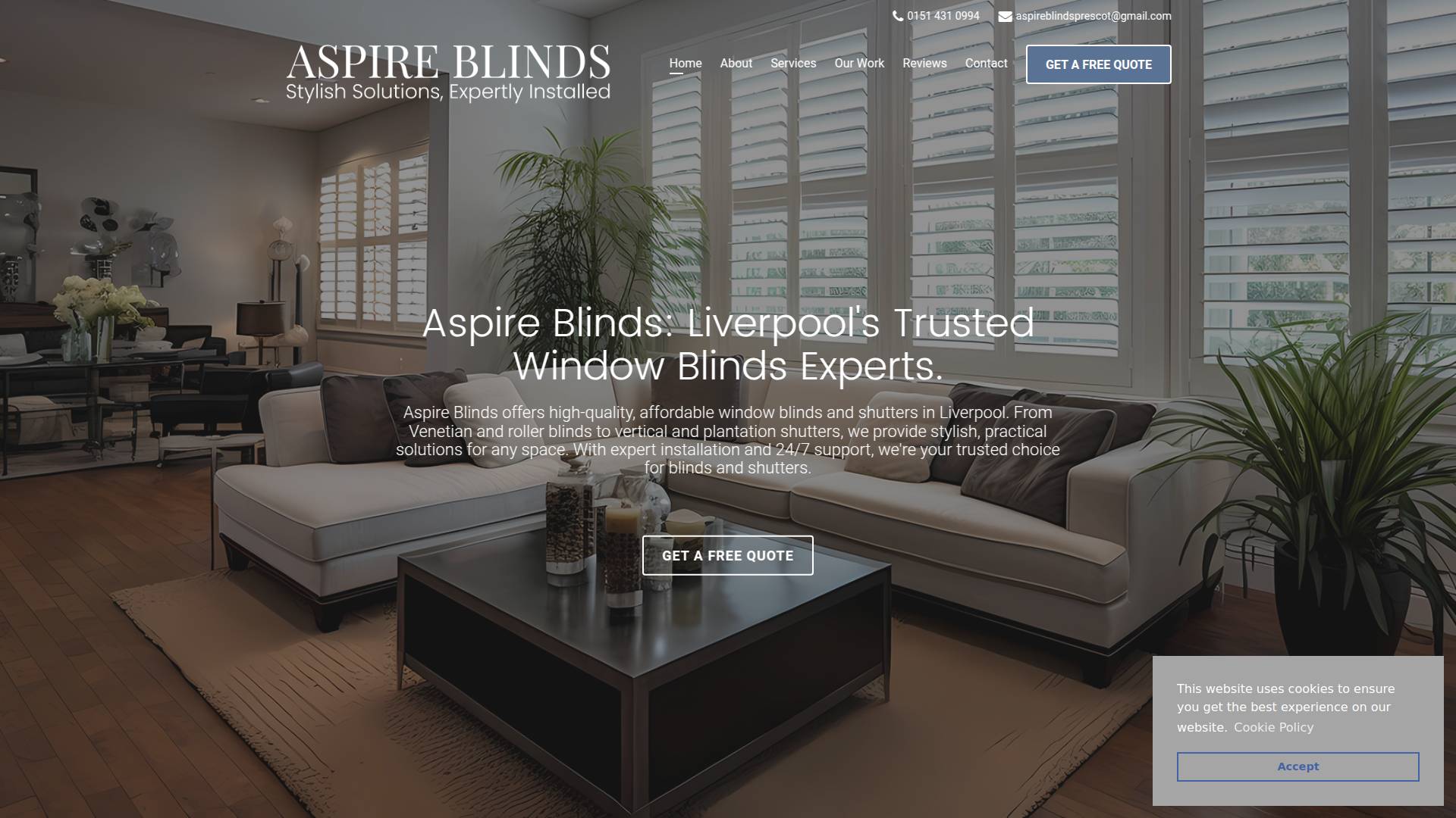 At Aspire Blinds Ltd, we specialise in providing premium made-to-measure blinds and plantation shutters for homes and businesses across Merseyside. With over 20 years of experience, we offer roller blinds, vertical blinds, Venetian blinds and bespoke shutters designed to suit every interior style. Our service includes consultation, accurate measuring and professional installation, ensuring durable, stylish and practical window coverings tailored to your needs.