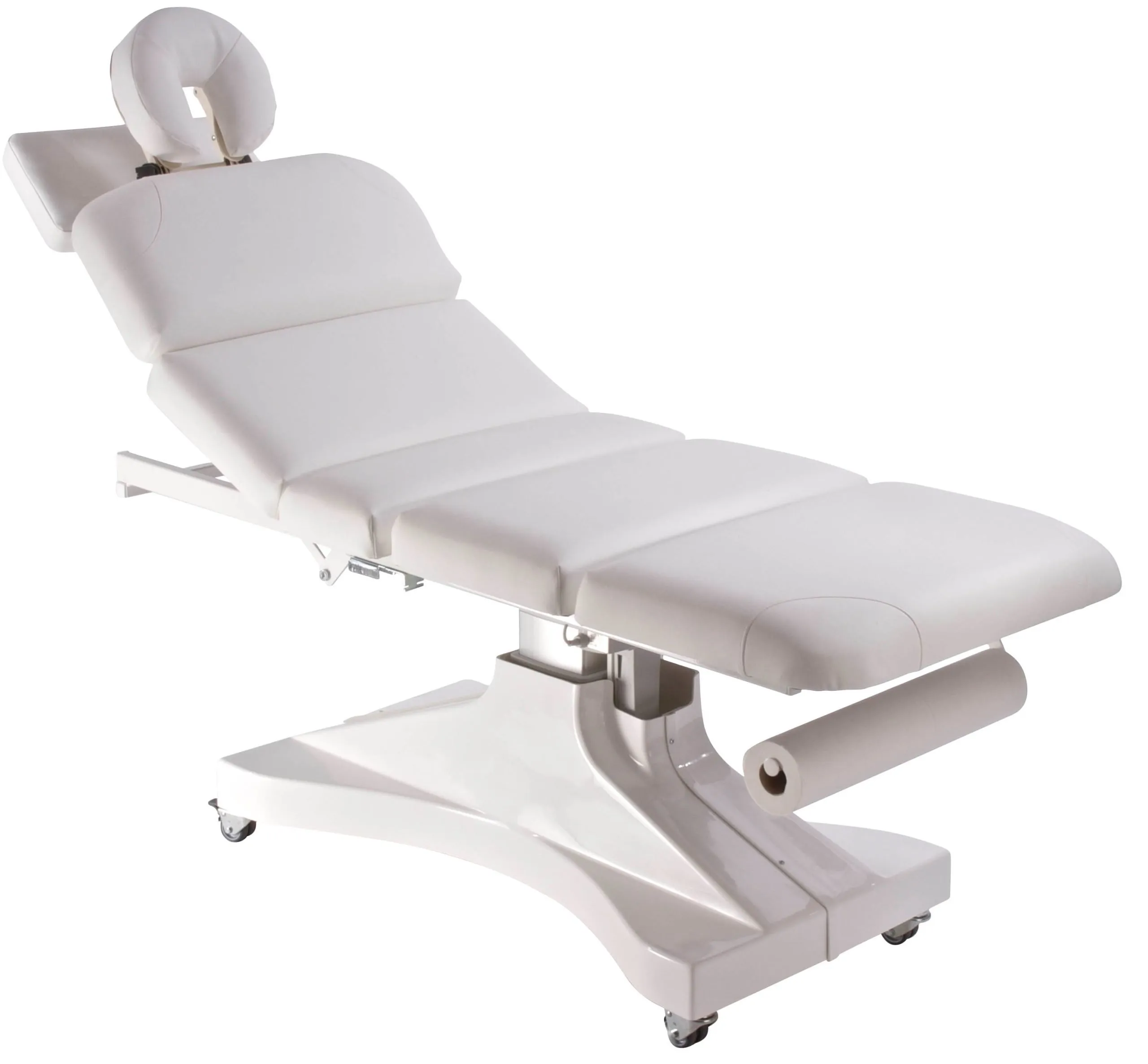 Fully electric 3 section treatment table with three motors and extended back rest.