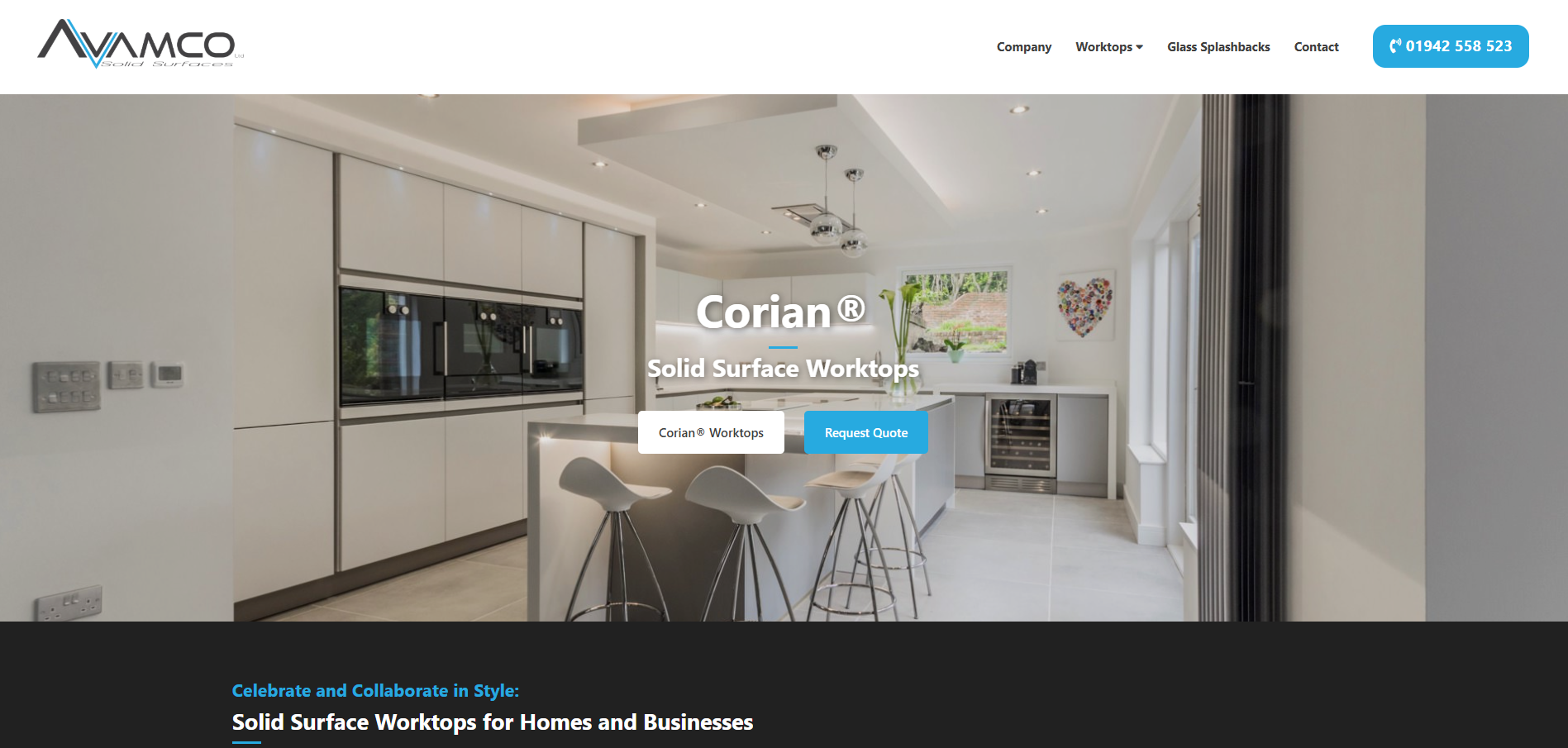 Avamco Solid Surfaces is one of the UK’s leading suppliers and fabricators of solid surface worktops. With over two decades of experience, we provide a professional service to designers, kitchen retailers, and homeowners nationwide. Our bespoke approach, combined with high-quality materials and expert installation, guarantees a worktop that notonly meets but exceeds expectations. We supply a variety of solid surfaces including Corian®, Quartz, Granite and Porcelain to many of the most respected designers, well known kitchen retailers and home owners throughout the UK.